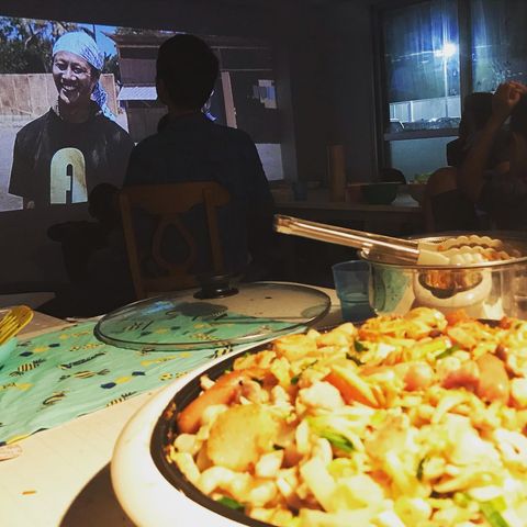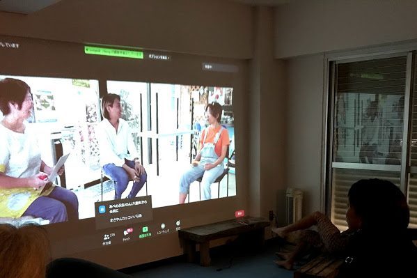 壁をスクリーンとし、プロジェクターで壁に映像を映し出すことで上映会をすることが出来ます。